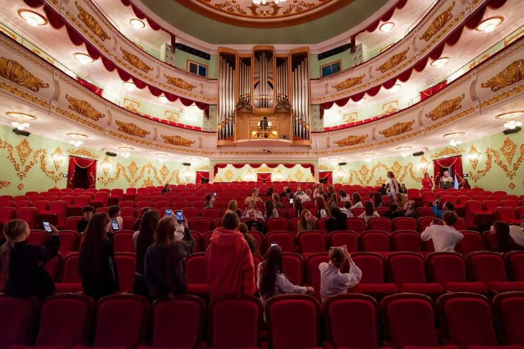 Юные музыканты побывали на экскурсии по театру, которую провёл органист Арсений Ушков, познакомились с возможностями органа и встретились с художественным руководителем театра Константином Ивановым. Он рассказал о становлении театра и пригласил ребят на балет «Русский Гамлет». Ребятам не только показали закулисье, но и дали насладиться звуками органа.